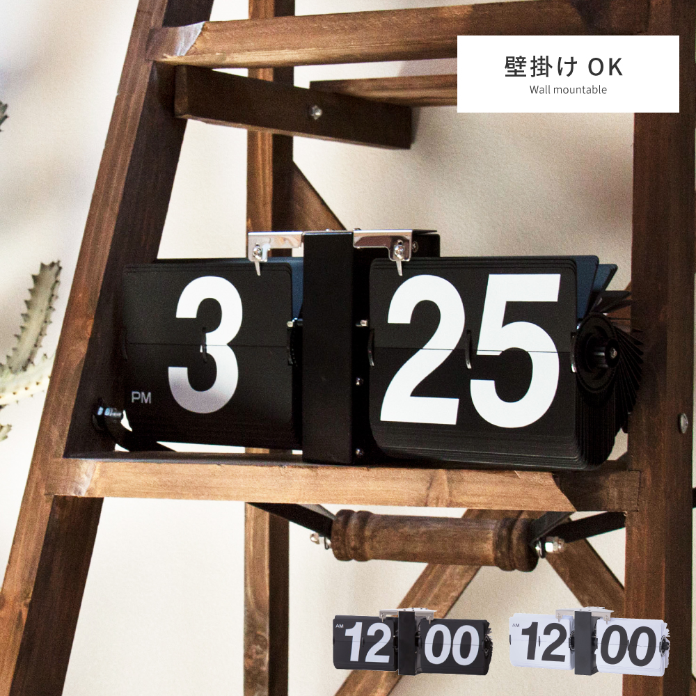 時計 置き時計 掛け時計 デザイン時計 パタパタ時計 壁掛け おしゃれ 白 黒 パネル ブラック ホワイト クロック インダストリアル ビンテージ モダン かっこいい