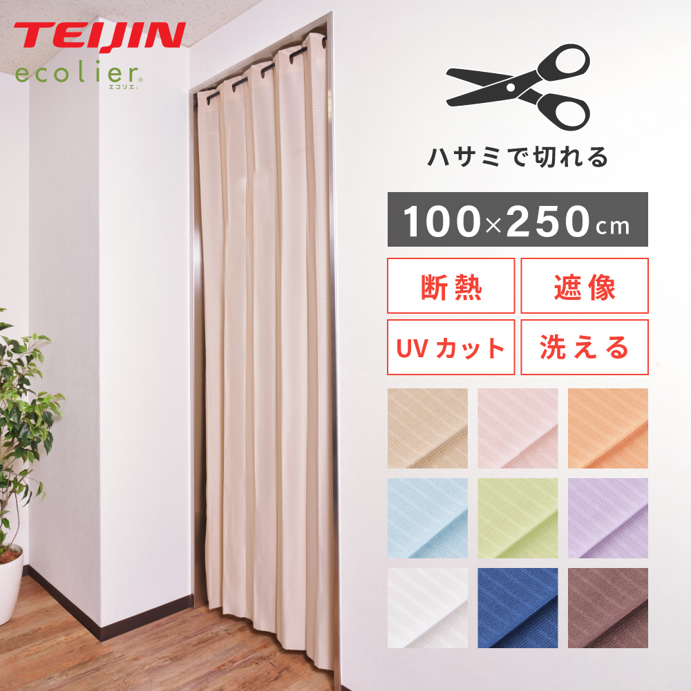 信頼のテイジン製素材「ecolier®」(エコリエ®)を使用しており、夏は遮熱効果で涼しく、冬は断熱効果で快適に過ごせるオールシーズン活躍するカーテンです。