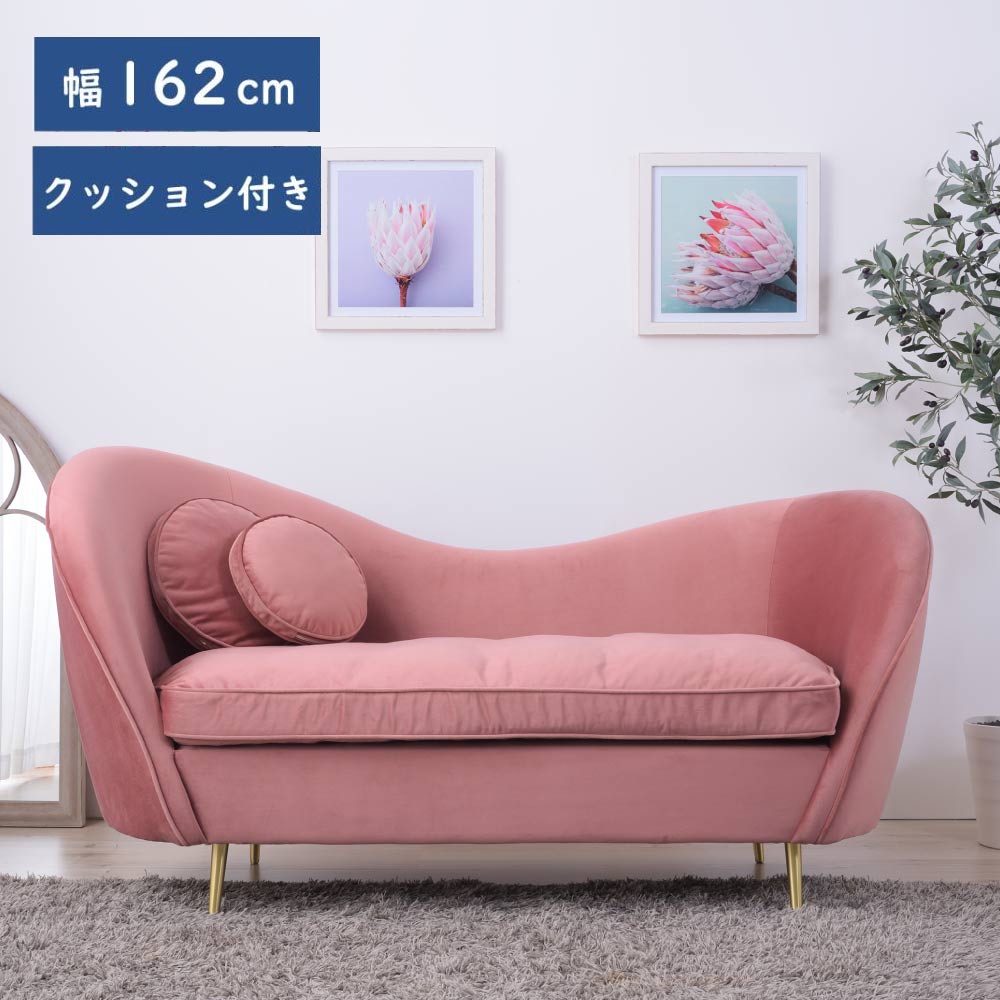 ソファー 2P 二人掛け 全2色 グレー/ピンク 脚付き ハート型 パイピング ベロア クッション付き おしゃれ かわいい ゴールド脚