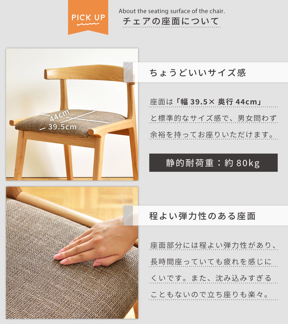 座面には程よいクッション性があり長時間座っていても疲れを感じにくいつくりになっています。
