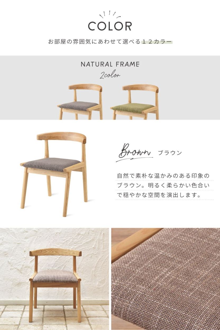 ●アッシュ材の木目が美しいフレームと落ち着いた色合いのファブリックが優しいぬくもりを感じさせる北欧テイストのダイニングチェアです。