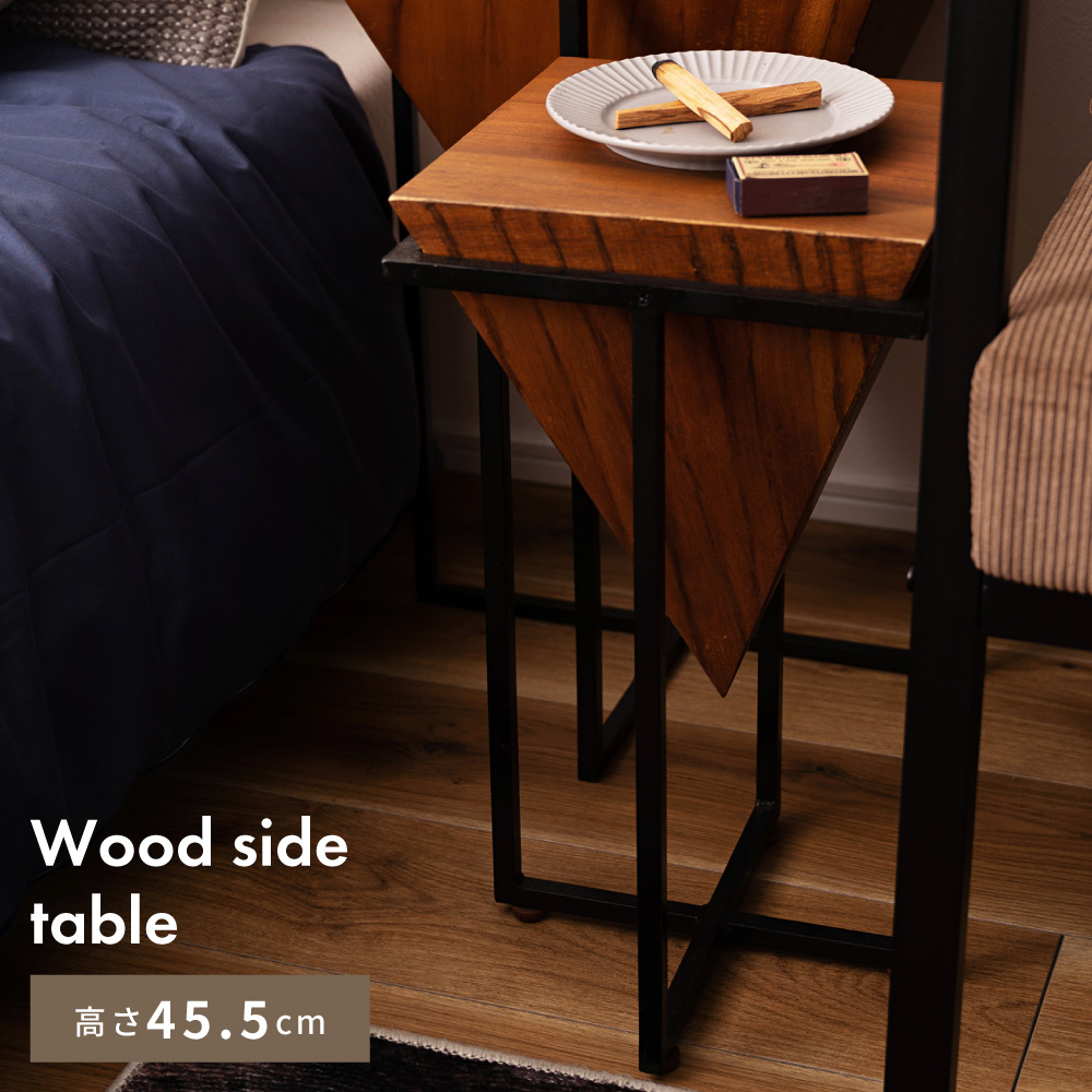 サイドテーブル おしゃれ 木 木製 ナイトテーブル 丸 四角 インダストリアル ヴィンテージ インテリア 天然木 アンティーク インダストリアル 北欧モダン シンプル