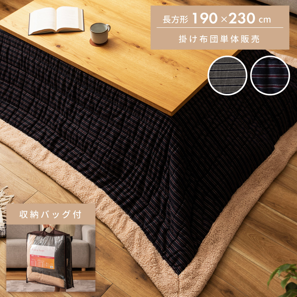こたつ布団 長方形 おしゃれ 上掛け 190×230cm こたつ掛け布団 薄掛け 薄手 ストライプ柄 シンプル 安い 人気