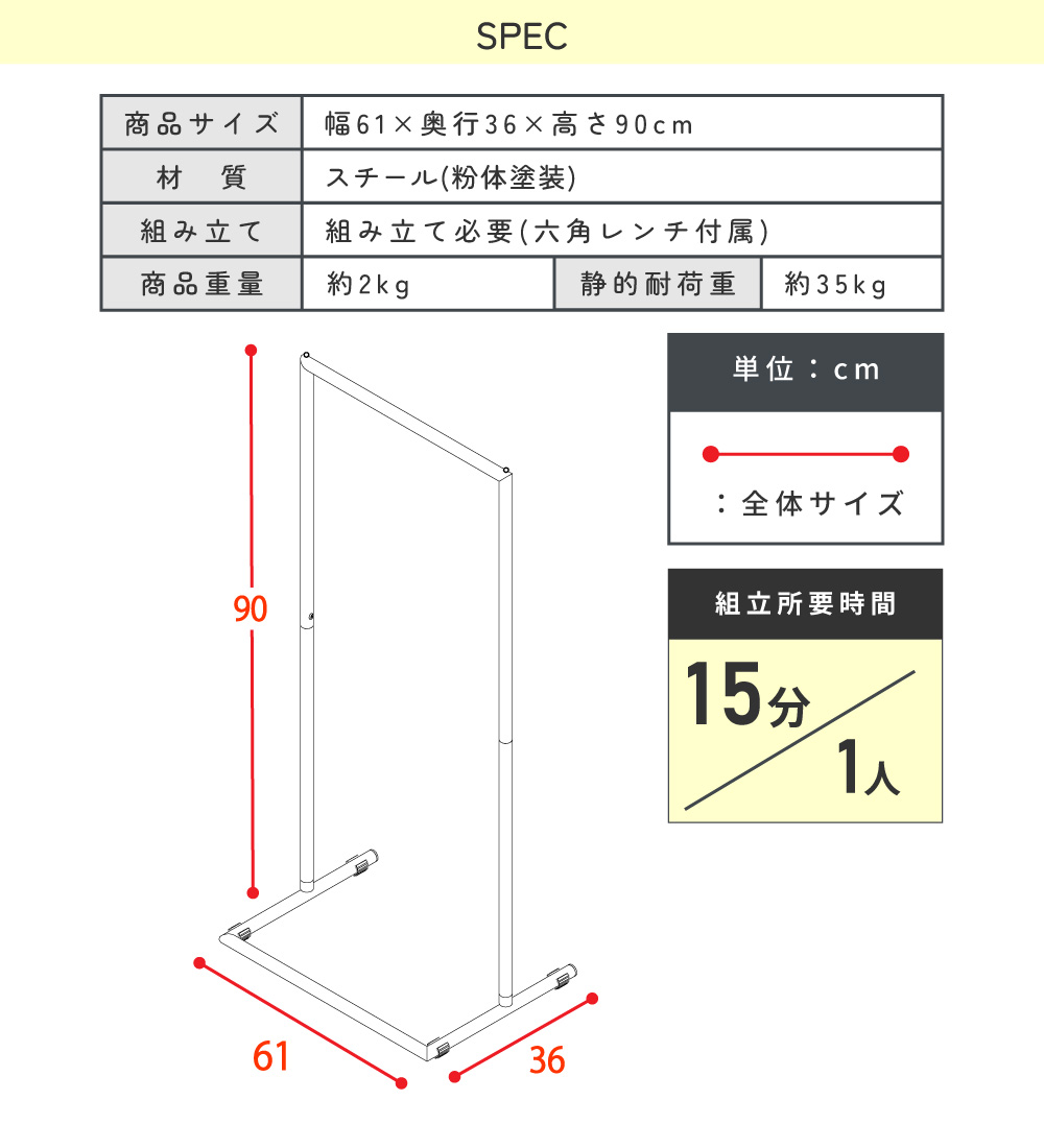 | サイズ | 幅61×奥行36×高さ90cm 【詳しいサイズ図はコチラ】 |