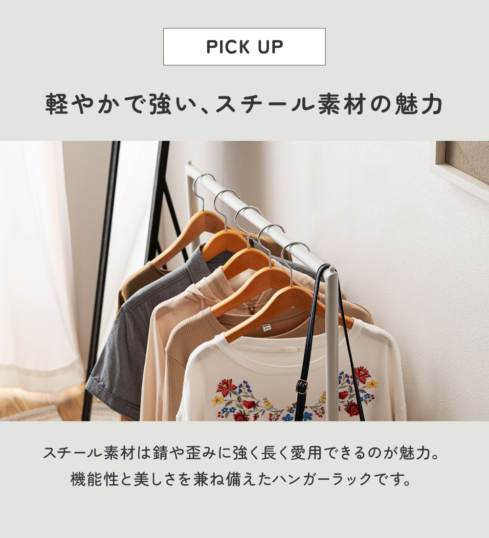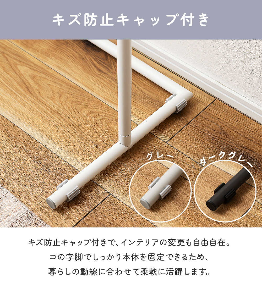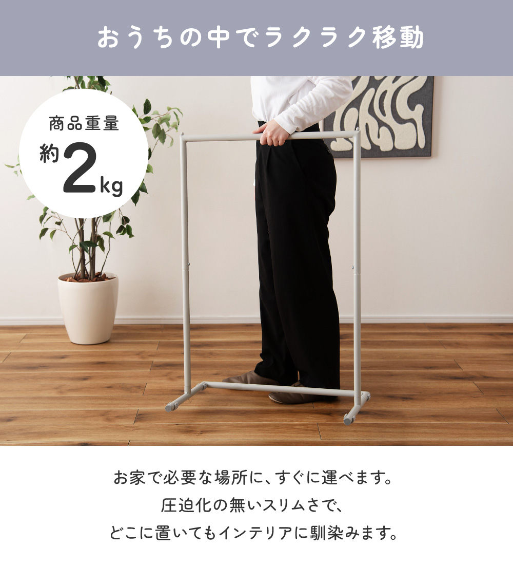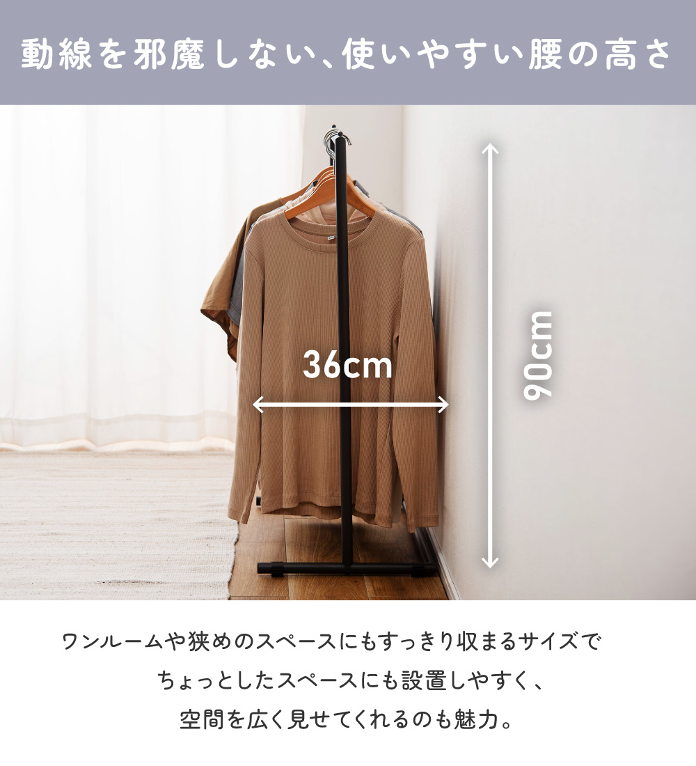 | ポイント | ロータイプのハンガーラックが新登場 暮らしの導線を邪魔しない、腰高サイズ。 ワンルームや玄関、ベッドサイドにもすっとなじむ、置きやすくて使いやすいハンガーラックです。 ● 圧迫感のない腰高設計 視線を遮らない高さだから、お部屋を広くすっきり見せてくれます。 狭めのスペースや動線の多い場所にも◎ ● 床にやさしいキズ防止キャップ付き 床を守るキャップを装備。 コの字脚構造で、ぐらつきを抑えながらしっかり支えます。 ● ズリ落ち防止ストッパー ハンガーはもちろん、バッグや帽子も安心して掛けられる設計です。 ● 置き場所を選ばない使いやすさ ベッドサイド、玄関、お子さま用の収納など、インテリアや暮らしに合わせて自由に使えます。 ● 約2kgの軽量設計 片手でも持ち運びしやすく、使いたい場所へサッと移動。 ● 傷やサビに強い粉体塗装 スチール素材に粉体塗装を施しました。日常使いでも美しさが長く続きます。 |