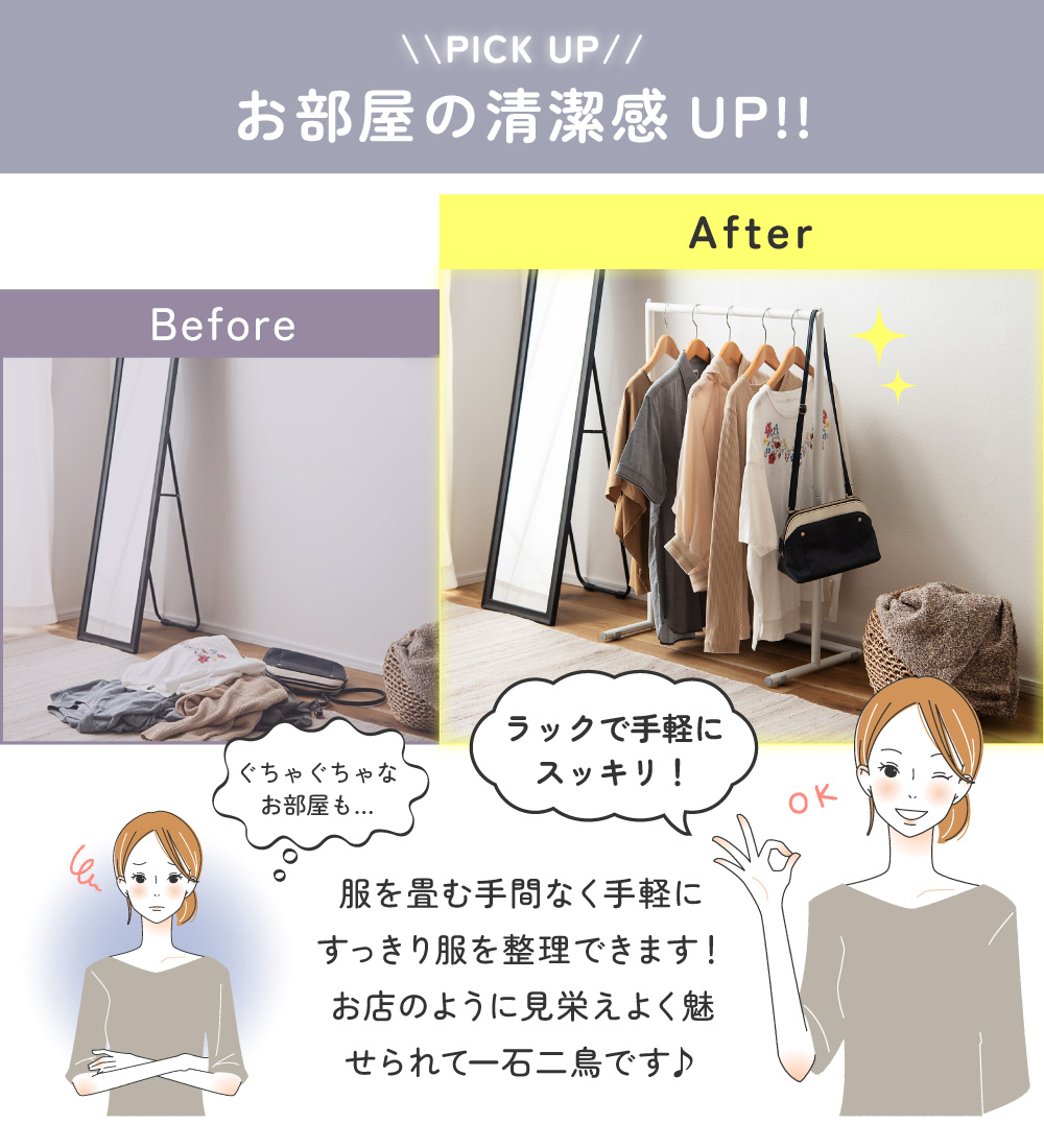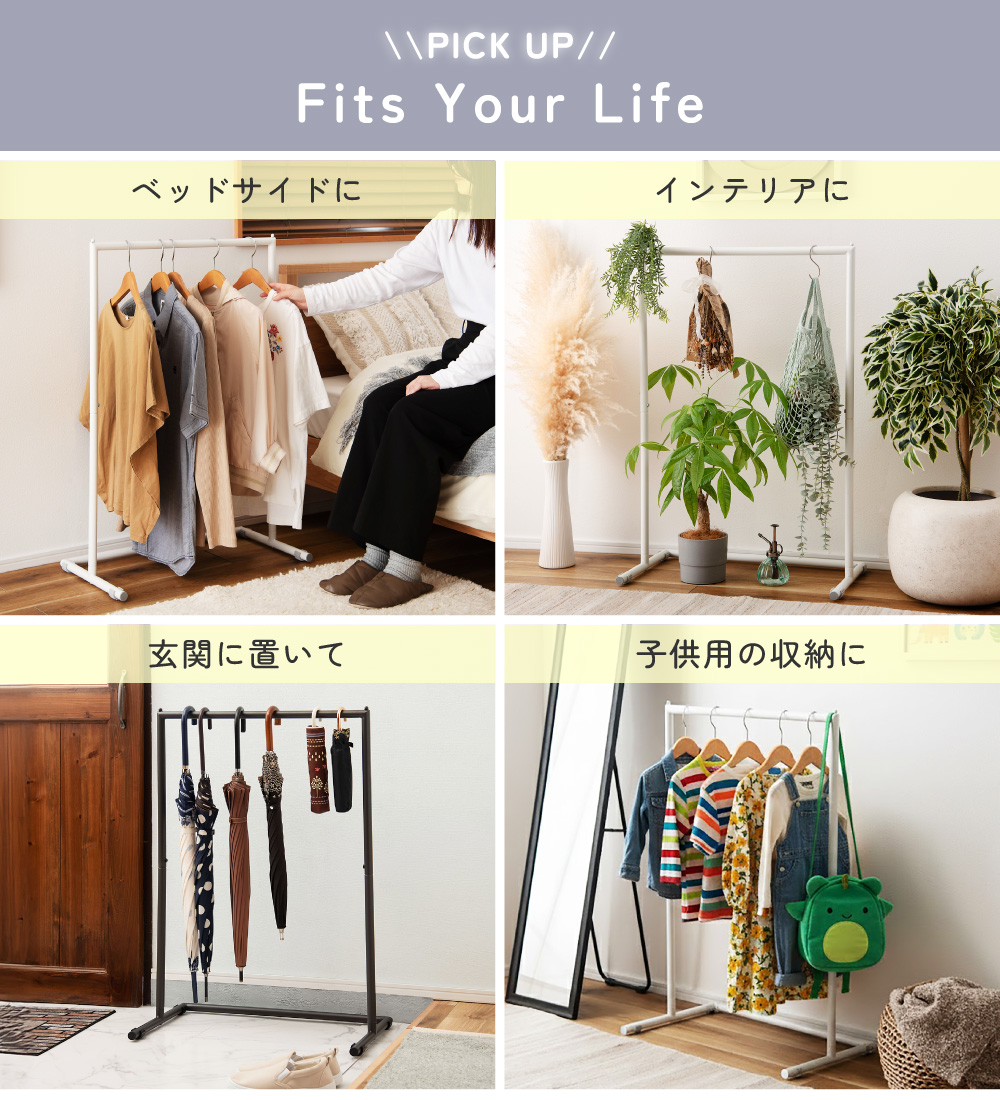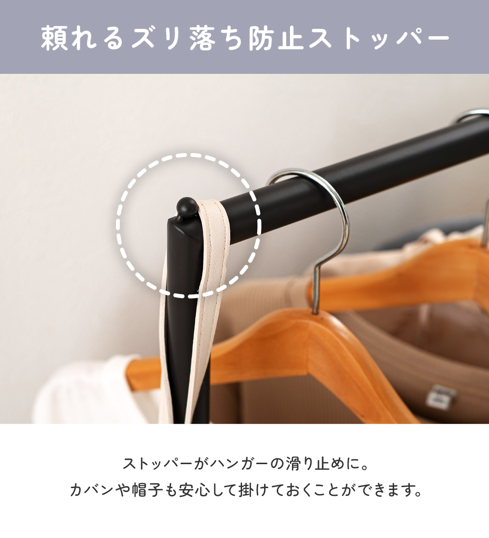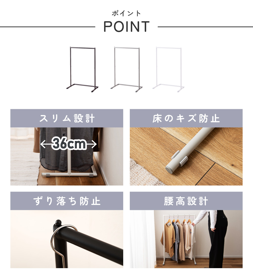 | ポイント | ロータイプのハンガーラックが新登場 暮らしの導線を邪魔しない、腰高サイズ。 ワンルームや玄関、ベッドサイドにもすっとなじむ、置きやすくて使いやすいハンガーラックです。 ● 圧迫感のない腰高設計 視線を遮らない高さだから、お部屋を広くすっきり見せてくれます。 狭めのスペースや動線の多い場所にも◎ ● 床にやさしいキズ防止キャップ付き 床を守るキャップを装備。 コの字脚構造で、ぐらつきを抑えながらしっかり支えます。 ● ズリ落ち防止ストッパー ハンガーはもちろん、バッグや帽子も安心して掛けられる設計です。 ● 置き場所を選ばない使いやすさ ベッドサイド、玄関、お子さま用の収納など、インテリアや暮らしに合わせて自由に使えます。 ● 約2kgの軽量設計 片手でも持ち運びしやすく、使いたい場所へサッと移動。 ● 傷やサビに強い粉体塗装 スチール素材に粉体塗装を施しました。日常使いでも美しさが長く続きます。 |