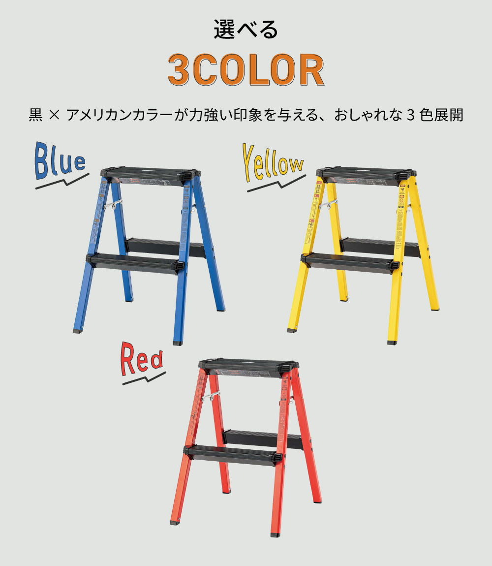 脚立 アルミ おしゃれ 踏み台 ステップ 折りたたみ式 アウトドア アメリカン コンパクト シンプル 高さ29 完成品 青 赤 黄色