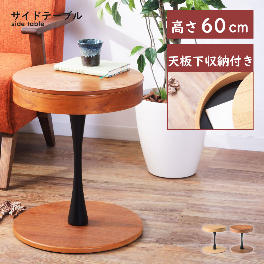 サイドテーブル ナイトテーブル 収納付き 円形 丸型 木製 ナチュラル おしゃれ かっこいい ラウンド 収納 天板下収納 便利 隠せる収納