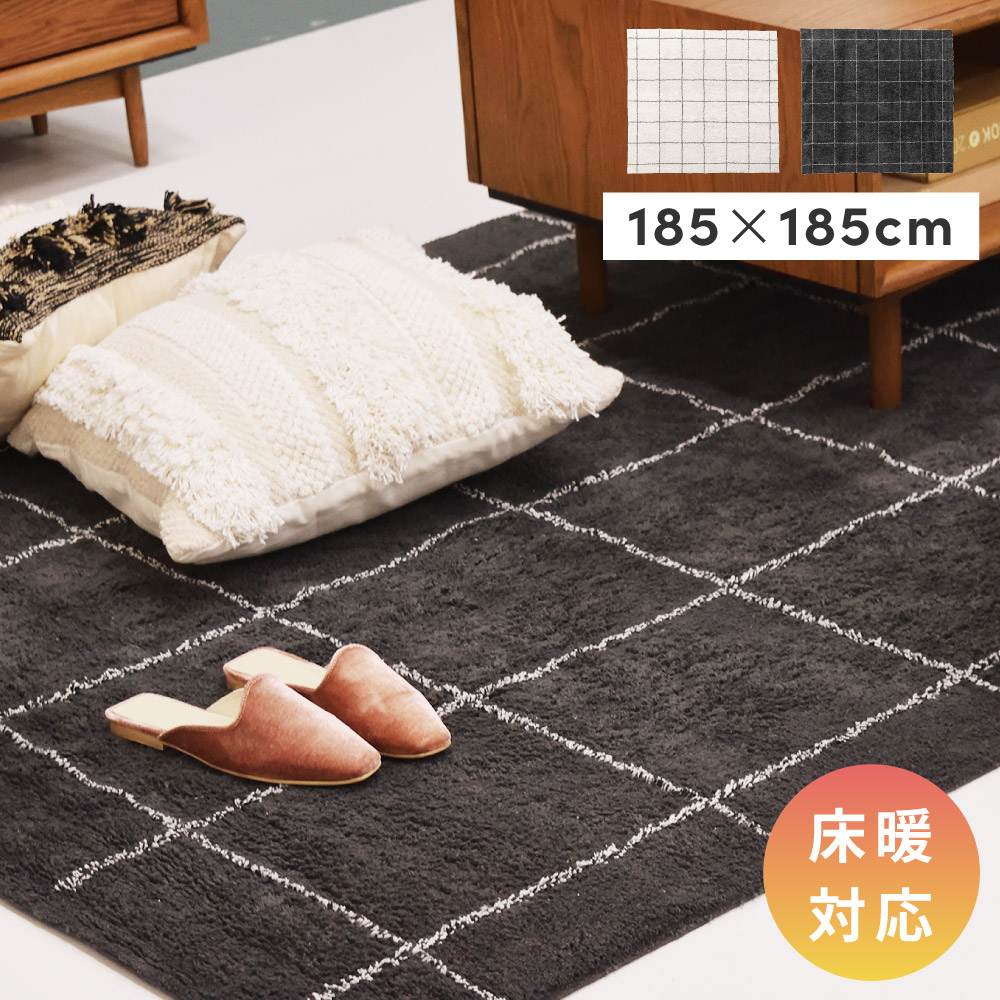 ラグマット シンプル 185×185 ラグ マット 敷物 じゅうたん 絨毯 カーペット コットン 綿 北欧 正方形 グレー アイボリー チェック シンプル