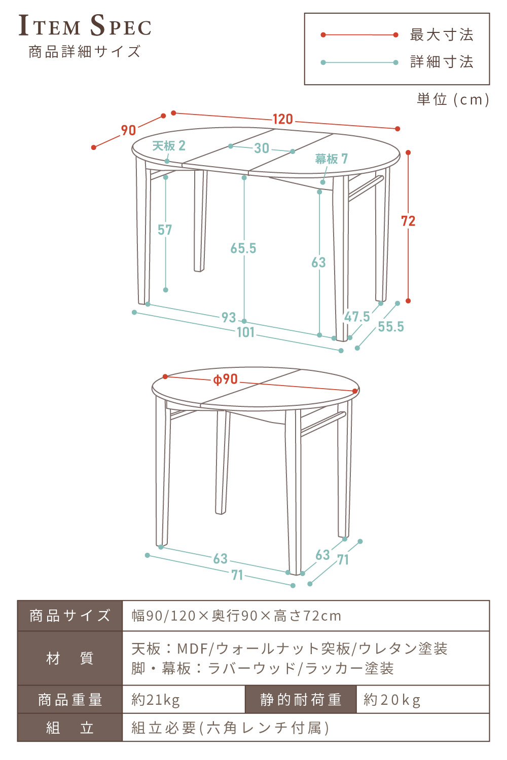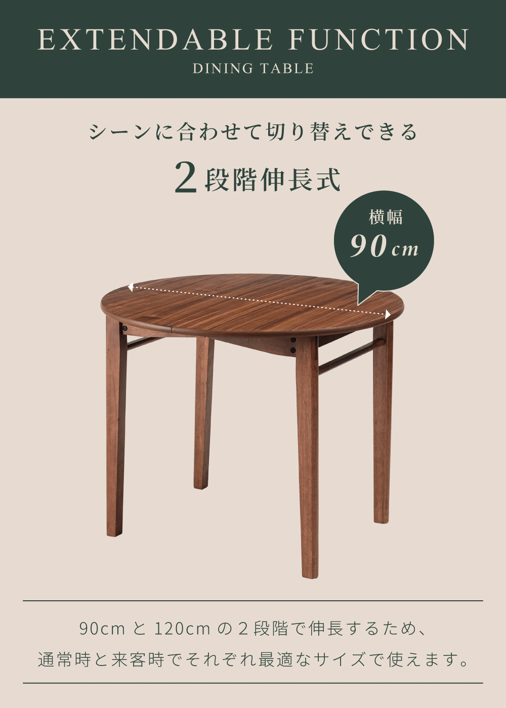 | サイズ | 幅90/120×奥行90×高さ72cm 【詳しいサイズ図はコチラ】 |