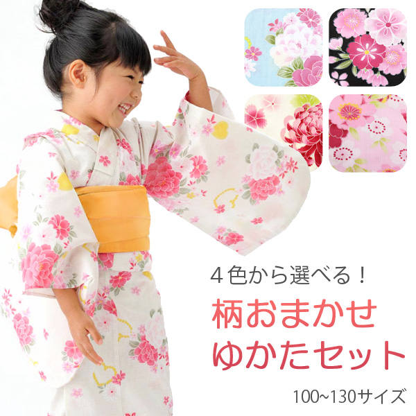 色が選べる 柄おまかせ女の子ゆかた+へこ帯セット njyd