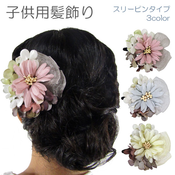 髪を留める部分には、パッチン留めとも呼ばれるスリーピン(三角形のピン)を使用しています。