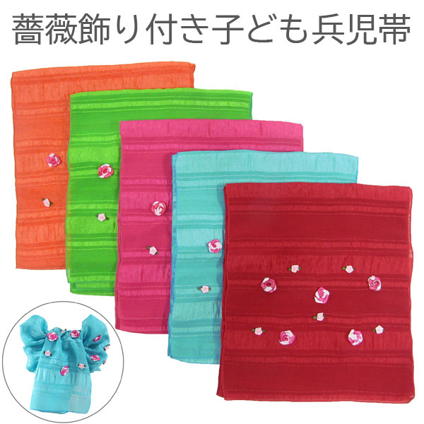 女の子薔薇飾り付き子ども用兵児帯 khbt