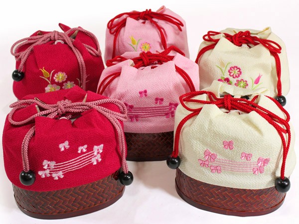 カゴ付き巾着です。着物・浴衣両方に使えます。