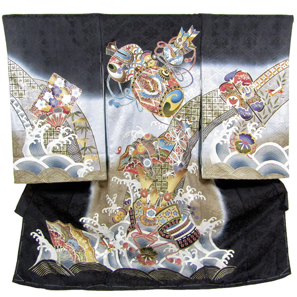 男の子お宮参り着物 tuzy05 小槌 兜 黒