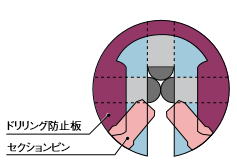 焼入鋼製のセクションピンとドリリング防止板とが、ドリルを二重にガードします。
