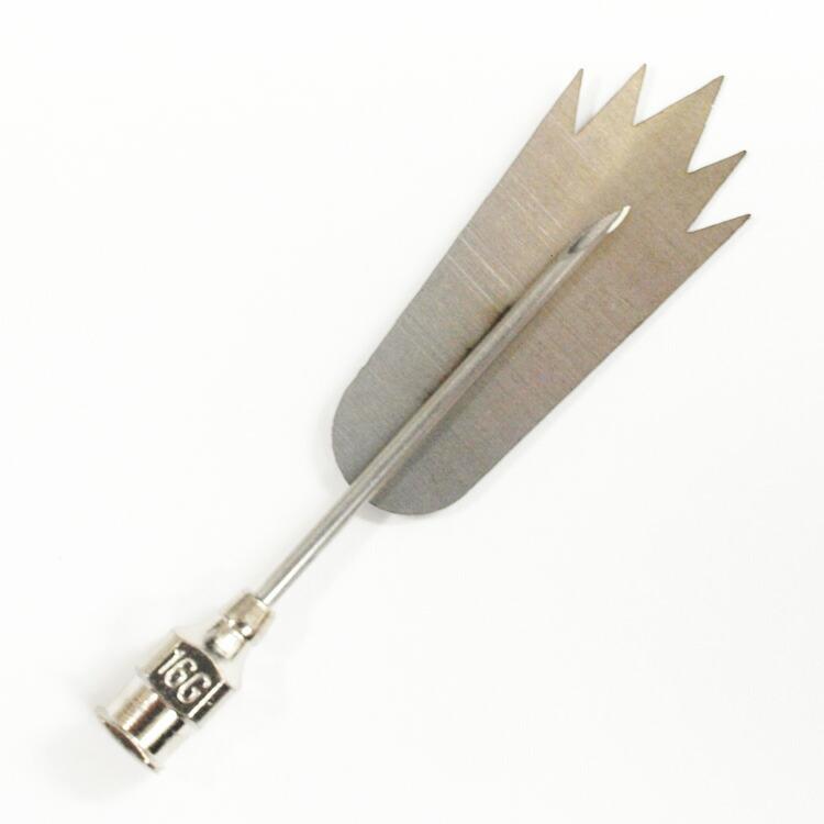 製品仕様上ツールと針の接着が弱い部分があり、外れてしまう場合がございます。