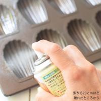 使用方法:缶をよく振ったあと加熱前の調理器具に20cmくらい離して1〜2秒間程度スプレーして下さい。