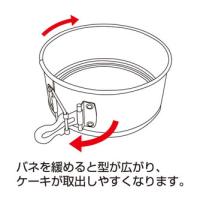 バネ式の止め具を緩めるとリングが外側に広がり、ケーキの取り出しが簡単。