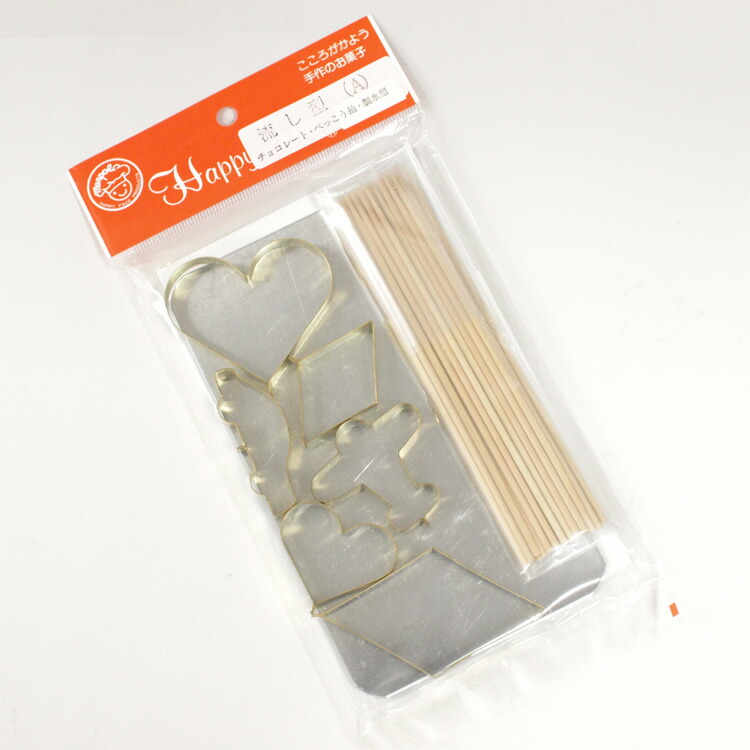 流し型(チョコレート・ベッコー飴など) Aセット(ハート大、ハート小、ダイヤ大、ダイヤ小、自動車、飛行機、竹串、アルミプレート)