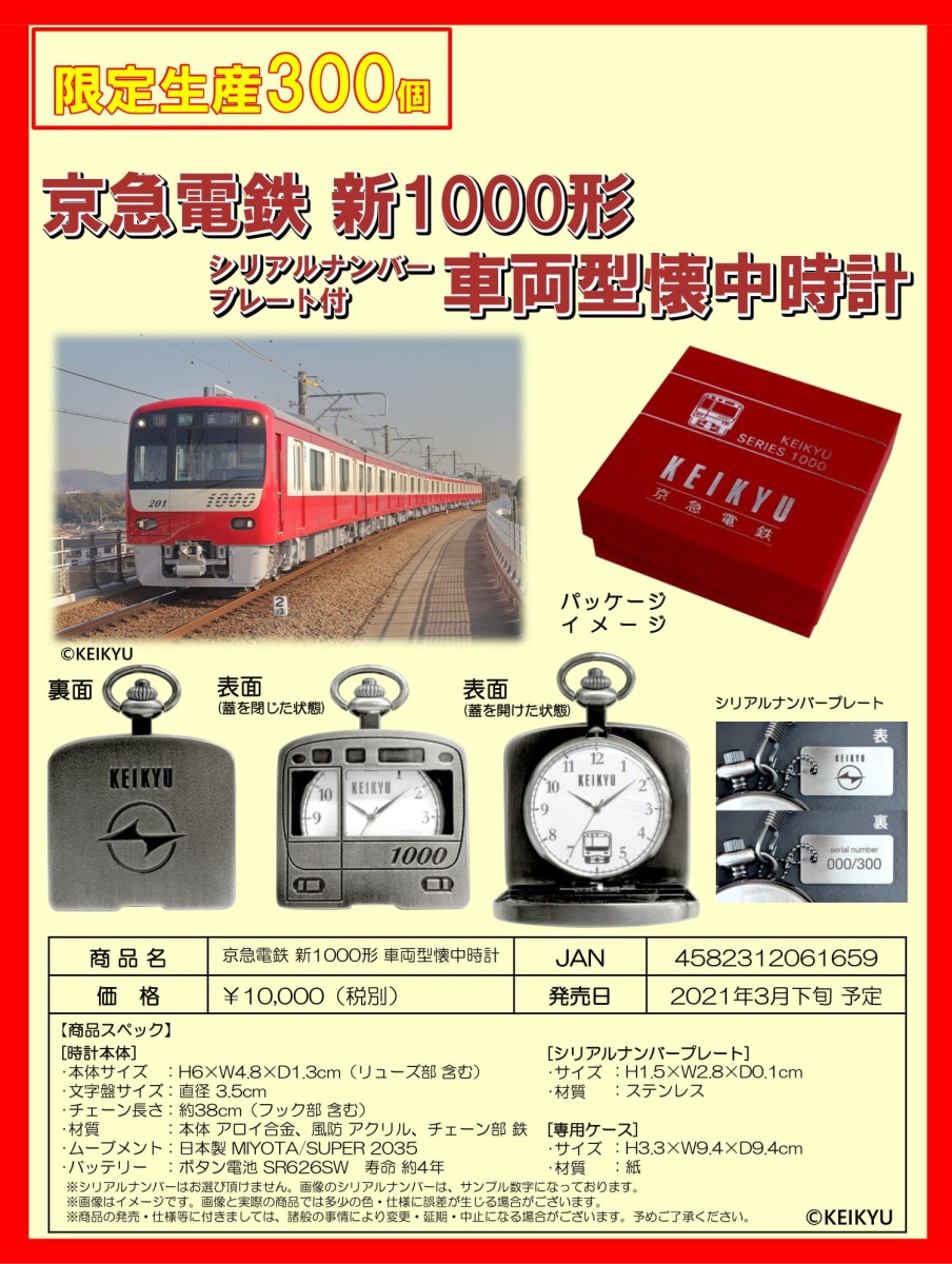【限定生産300個】京急電鉄 新1000形 車両型懐中時計 シリアルナンバー入プレート付き