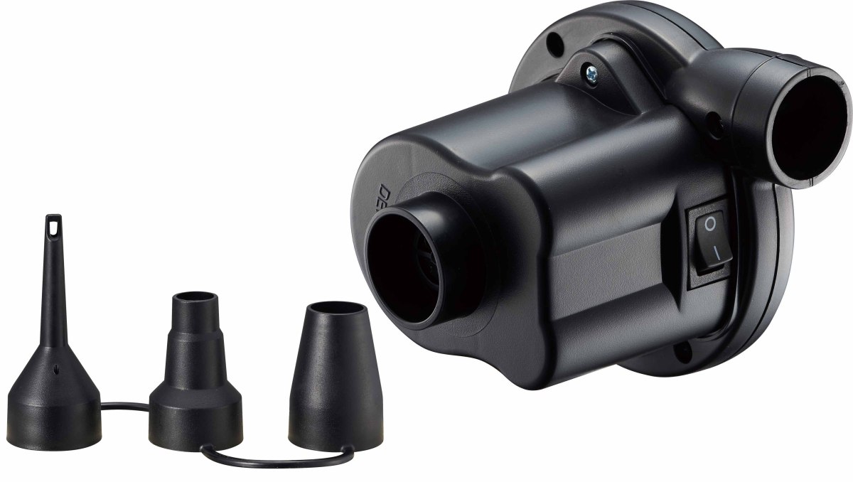 ●商品説明:ラクラク空気が入れられる電動式のポンプです。海外旅行でも活躍。●サイズ:12 x 13.4 x 10.5 cm●ノズル数:3●重量:300g●材質:本体:ABS、ノズル:PE