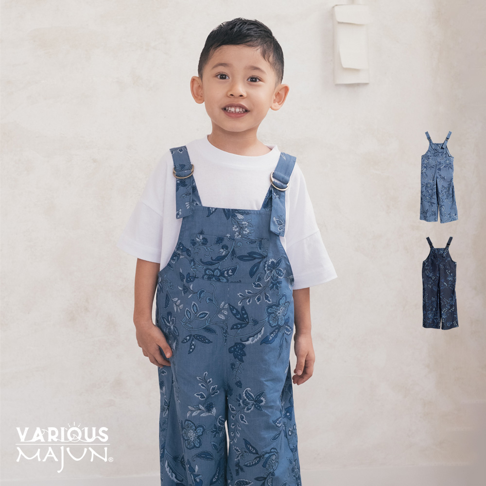 おしゃれも遊びも全力で!南国デニムサロペット琉球ツツジやブーゲンビリアがちりばめられた、南国気分いっぱいのキッズサロペット。上品な更紗柄ながら、デニムのラフさもあるので、遊びもおしゃれも思いっきり楽しめます。軽やかな4.5オンスの綿100%デニムは、動きやすくて快適な着心地。男女問わず着用でき、肩ストラップで着丈のサイズ調整も可能。ポケットも充実しているので、お出かけにもぴったり。インディゴと明るめブルーの2色展開で、お子さまの個性に合わせたスタイルが楽しめます。普段着にも特別な日にもおすすめの一着!※デニム生地を使用した商品は、特性上着用時に色落ちする場合がございます。汗や雨で湿った時や摩擦により色落ちし、他の衣料やバッグ、家具やカーシート等に色が移ることがあります。淡色・白の製品と組み合わせる場合には特にご注意ください。★インディゴ色のみ対象デザイン:キッズサロペット素材:4.5oz綿100デニム/綿100%ボタン:なし
