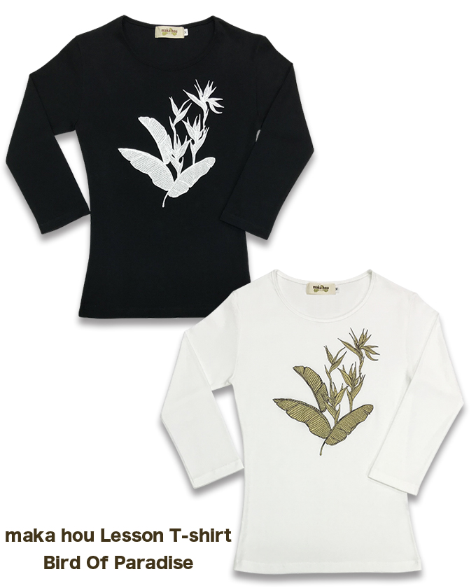 maka hou レッスンTシャツ(7分袖) バードオブパラダイス フラ フラダンス ハワイアン Tシャツ ハワイ Hawaii ラメ