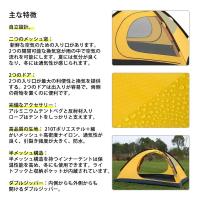 〇半メッシュ構造:半メッシュ構造を持つインナーテントは保温性能を高め、冬にも使用できます。ライトフックと収納ポケットが内蔵されています。