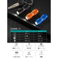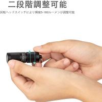 ヘッドを時計回りに少し回転させると、5ルーメンになります。更に回転させると、180ルーメンになります。消灯は逆です。