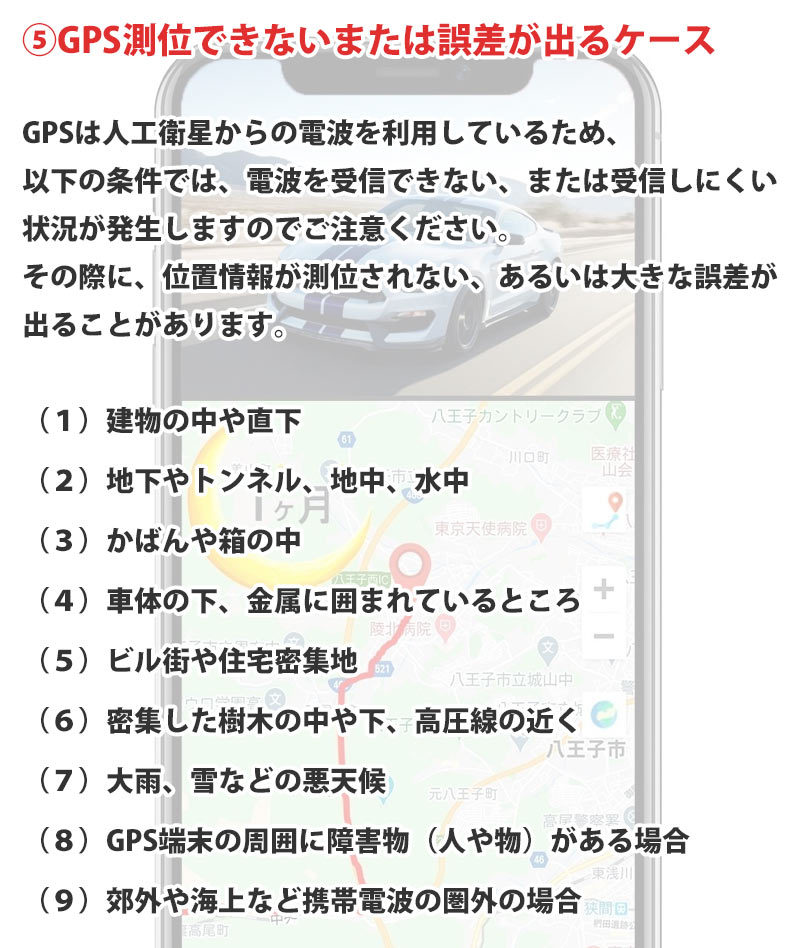 GPSの性質上、設置場所や受信コンディションによって、誤差が大きくなることもあります。