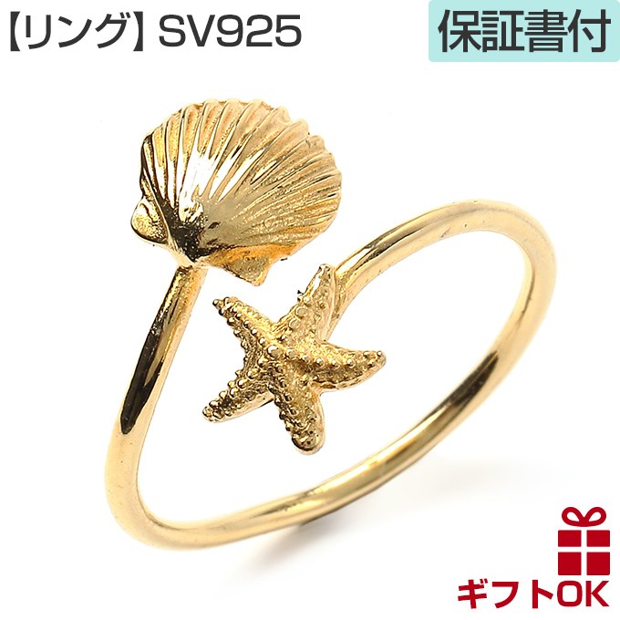 商品名:ハワイアンジュエリー フリーサイズ リング 指輪 ヒトデ 貝 レディース シルバー925 ゴールドコーティング ピンキーリング 2号-8号相当 レディス jewelry