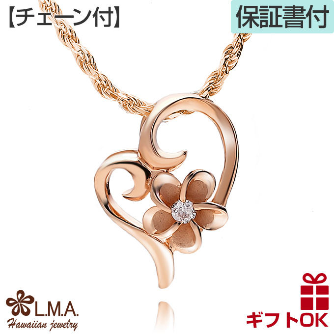 | ピンクゴールドコーティング プルメリア in オープンハート ハワイアンジュエリー ネックレス KT614 | |