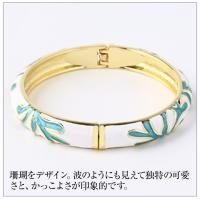| 詳細 | コーラル(珊瑚)をデザインしました。デザイン部分は、絵の具のようなエナメルにゴールドのメッキで縁取っています。マリンなデザインでもありますよね。波のようにも見えて独特の可愛さと、かっこよさが印象的です。 ヒンジで簡単に開いて留まるので、とてもつけやすく、外しやすいので、バングルアクセサリーとしての面倒なことが無いのが使いやすくて良いです。 エナメルの独特の光沢がはまってしまいそうです!いろんなシーンで活躍しそうです。ハワイでも大人気アイテムです。フラをされてる方などにも人気です ちょっと前までは、古典柄が多かったのですが、最近のトレンドを意識したデザインが登場したので、当店でもぜひ、ご紹介させていただきたいと思い、今回メーカー在庫を調整していただき、輸入することになりました。この機会に是非ご検討ください! *エナメル部分は写真のように一部の色は、マーブル(むら)加工をしています。一点一点違いますので、それも味と思ってお楽しみください。 |