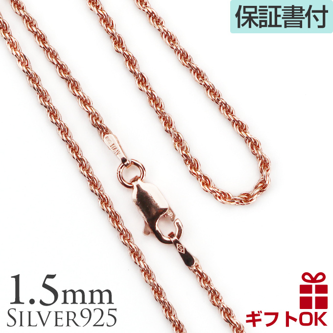 | ハワイアンジュエリーネックレス シルバーロープチェーン イピンクゴールドコーティング 太さ1.5mm | |