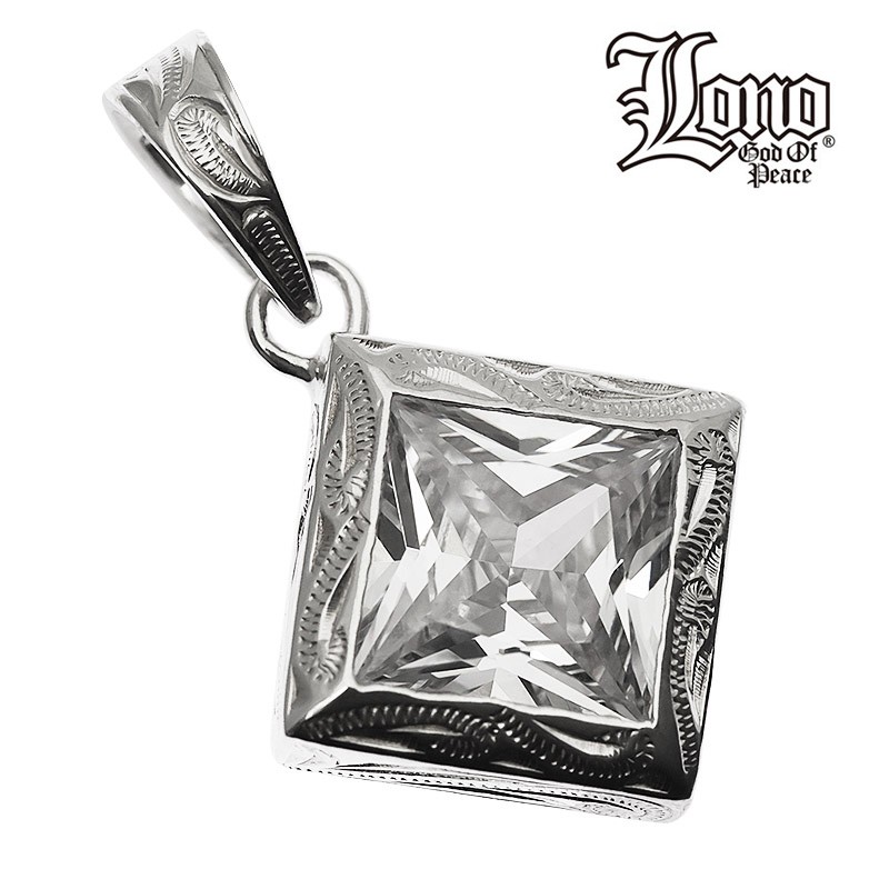 | 永遠に続く幸せを意味する「スクロール(波)」が刻まれている、スクエアペンダント。 | |
