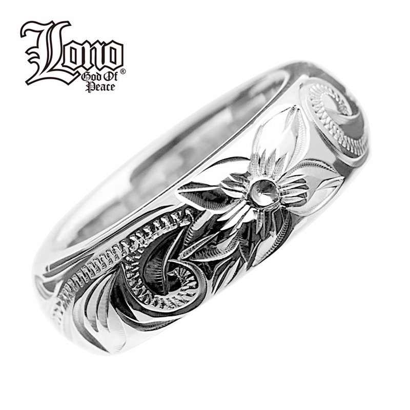 Lono定番人気シリーズのバレルリング。彫り模様にはLonoオリジナルのオールドイングリッシュというプルメリアとスクロールが描かれています。フラットタイプと違い、膨らみがるのが特徴。 ご注文後のキャンセル、変更がお伺い出来ませんので どうぞご了承くださいませ。 当店ははロノ正規取扱店です。 商品にはロノのギャランティーカードが付属いたします。素材:シルバー925幅:6mm 厚み:3mm