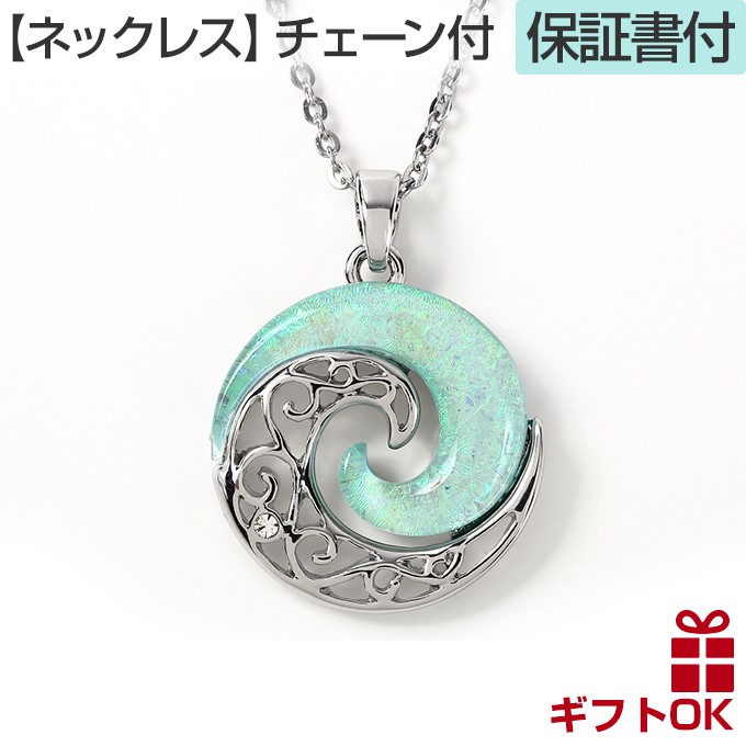 美しく、光をキラキラ反射する、透き通るようなブルーのレジンが魅力的な、ハワイでは定番のスクロール(波)をデザインしたネックレスです。