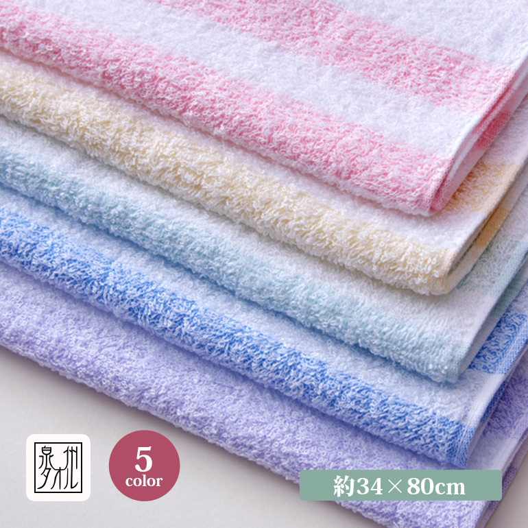 泉州タオル フェイスタオル 薄手 薄い 速乾 収納 素材 ボーダー柄 ストライプ柄 日本製 かわいい 吸水性 よく吸う [泉州ボーダーラインフェイスタオル]
