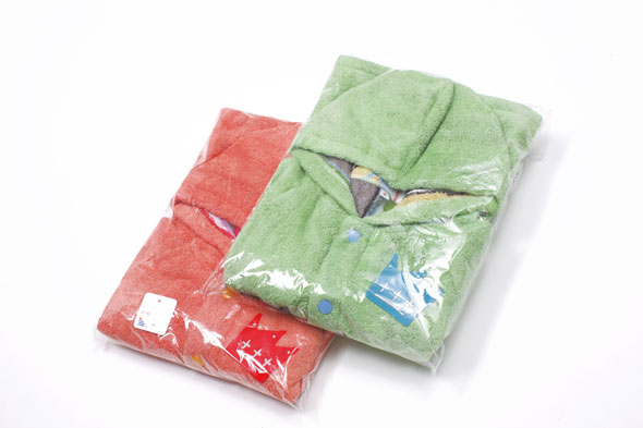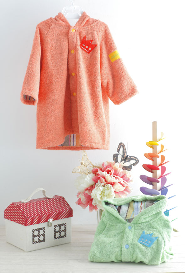 特徴は腰のないやわらかな糸で優しい肌触り。ずっと着ていたいっとお子様が思っていただけるバスローブに仕上げてます。