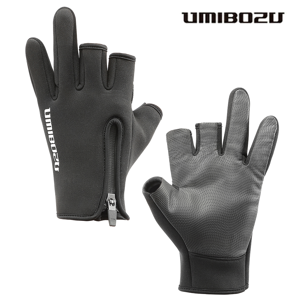 【再入荷】UMIBOZU ウミボウズ 釣り グローブ フィッシンググローブ 釣り用手袋 冬 防寒 YKK止水ジッパー 裏起毛 釣りグローブ 手袋 冬用グローブ 三本指出し