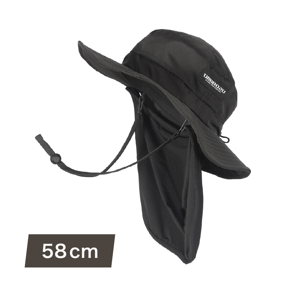 【58cm】フィッシングハット UMIBOZU ウミボウズ 釣り用ハット 夏 帽子 メンズ 紐付き 日除け付き つば広 日焼け防止 UVカット