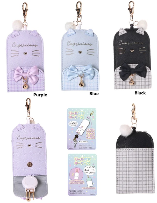 ネコフェイス リール付きキーケース ランドセル キーケース キーホルダー キーチェーン リール付きキーケース キーカバー 防犯カバー 鍵ケース