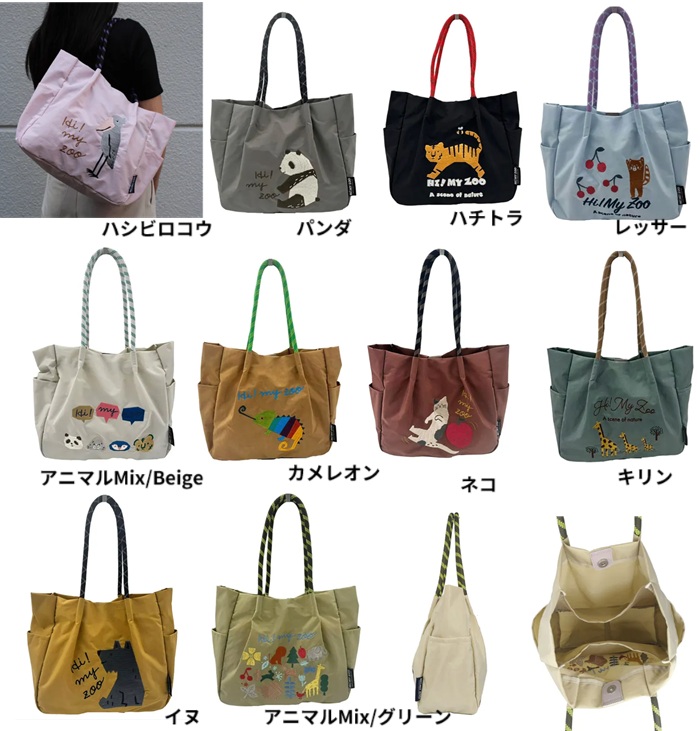 ハイマイズー HI!MY ZOO アニマル刺繍トートバッグ ロープハンドル バッグ トートバッグ トート バッグ サブバッグ アニマルトート