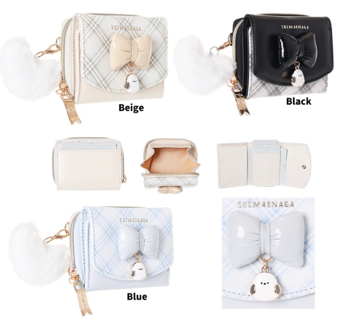 Coboca+合皮シマエナガリボンミニ財布 しまえなが コンパクト財布 お財布 財布 レディース財布 三つ折り財布 お財布 コンパクト