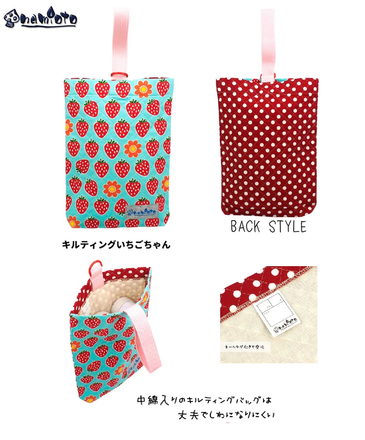 namioto キルティングバック シューズバッグ いちごちゃん シューズケース 日本製 ハンドメイド 上履き入れ シューズ袋 運動靴入れ キッズ 靴入れ