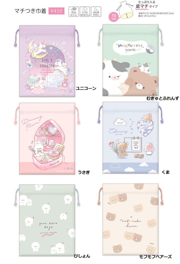 マチ付き巾着袋小 コップ袋 ランチ巾着 コップ入れ クーリア 巾着 女の子 男の子 給食マスク入れ お手ふき入れ 小さめ巾着 巾着袋小