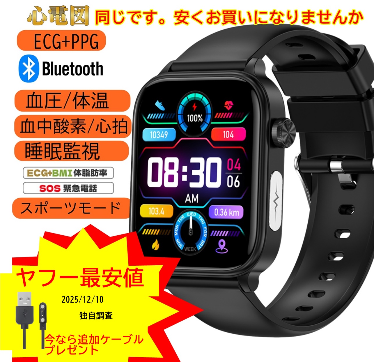 スマートウォッチ 心電図 血圧 心拍数 ライバル7980円を 通話機能 着信通知 血中酸素 血液組成分析 体組成分析 呼吸率 体温 音楽・カメラ制御 SOS機能