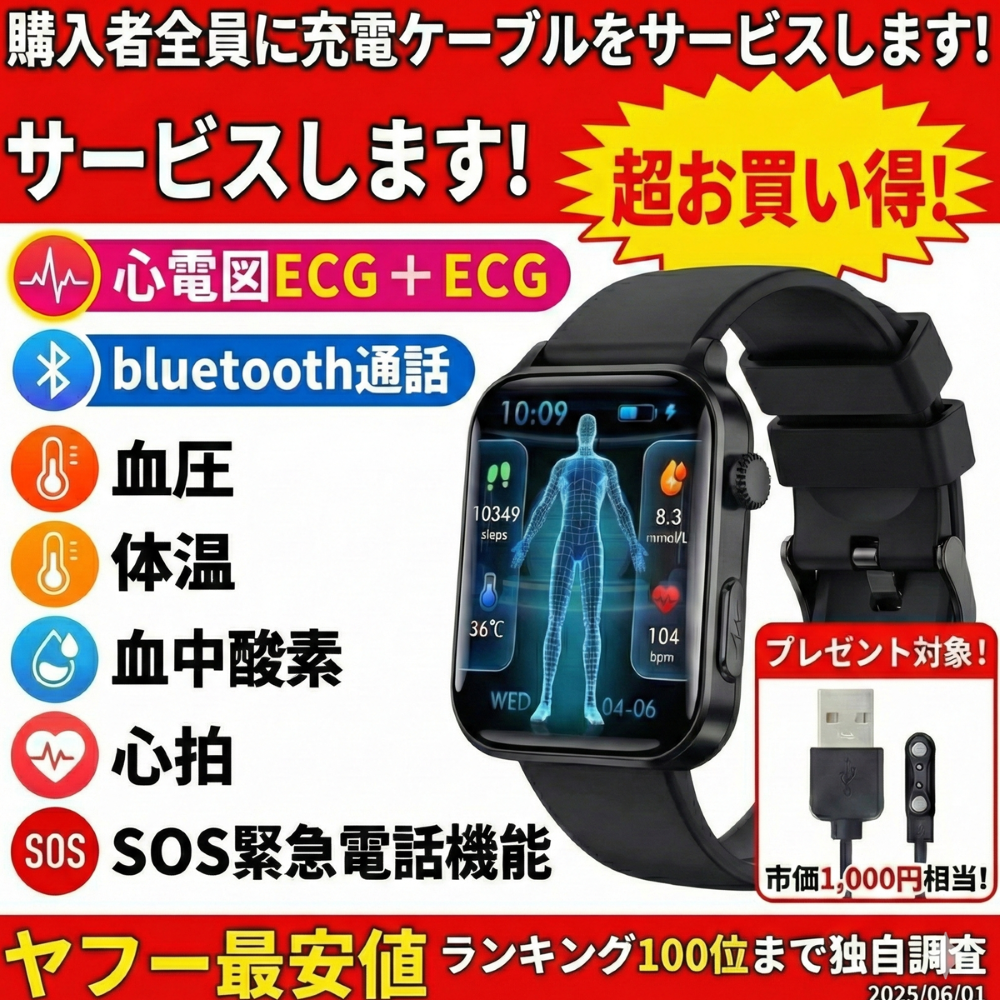 スマートウォッチ 心電図 血圧 心拍 通話機能 着信通知 血中酸素 血液 体組成分析 呼吸率 体温 音楽・カメラ制御 SOS機能