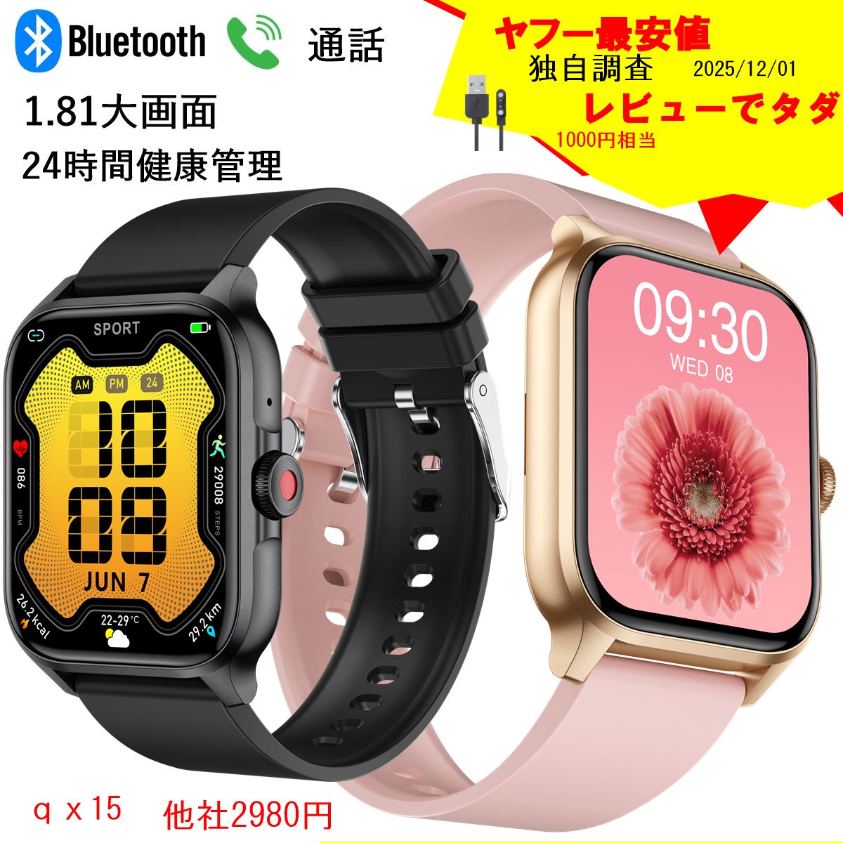 スマートウォッチ 通話機能 健康管理 運動 他社2980を 腕時計 メンズ レディース 運動記録 24H健康管理 着信通知 IP67防水 歩数計